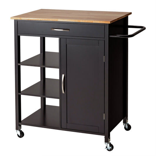 Mobile Kitchen Island Cart with Rubber Wood Top-Brown