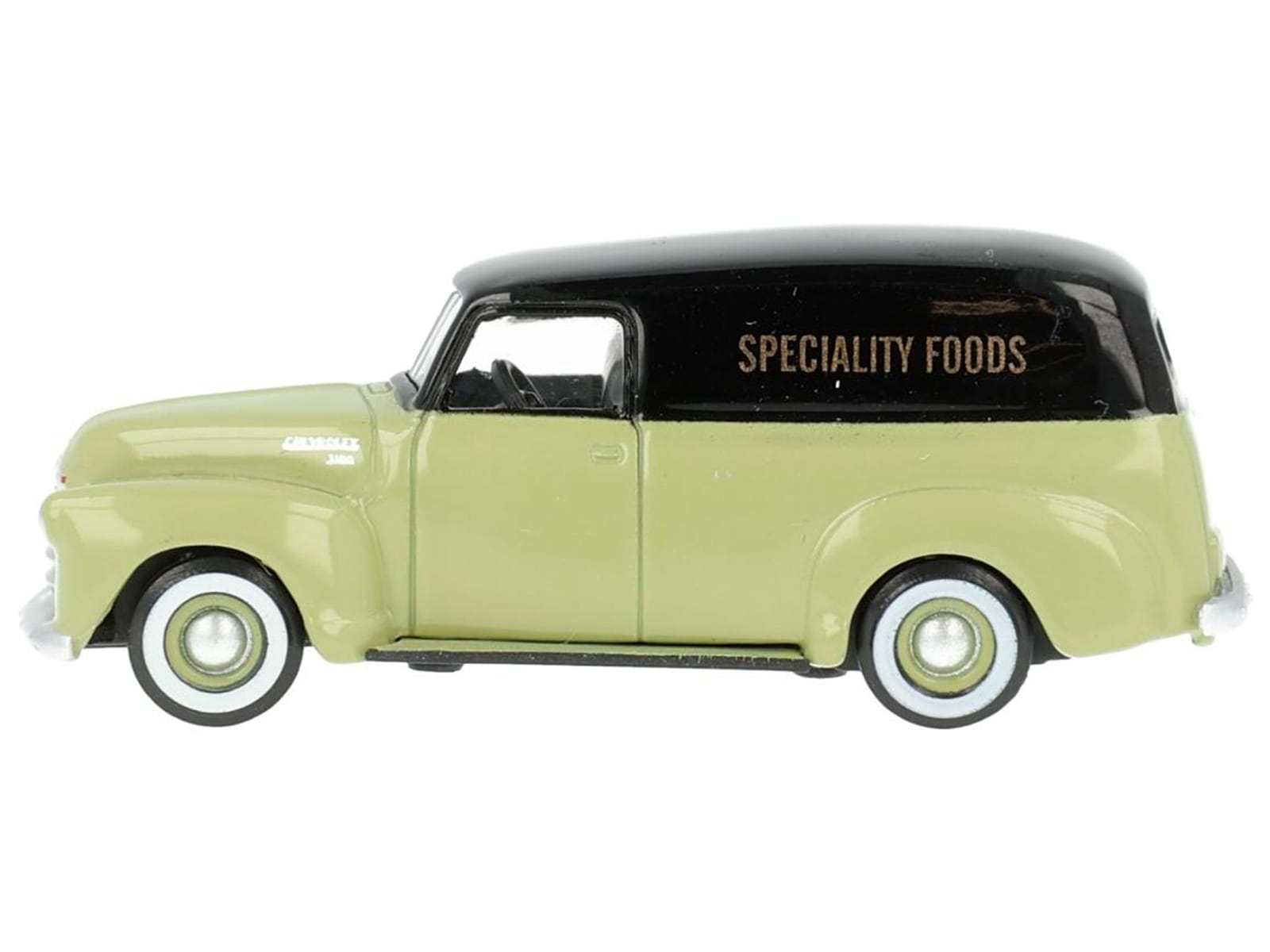 • Brand new 1/87 (HO) scale diecast car model of 1950 Chevrolet Panel Van “Speciality Foods” Light Green and Black die cast model car by Oxford Diecast.