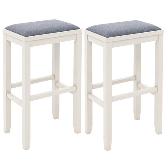 2 Pieces 31 Inch Upholstered Bar Stool Set with Solid Rubber Wood Frame and Footres-Griege