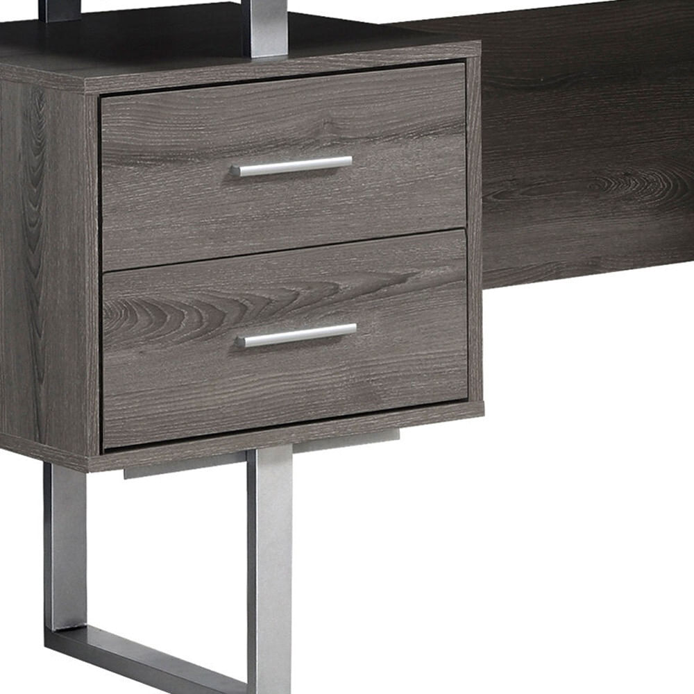 This 24-inch taupe and silver computer desk with three drawers will help to turn your office space into an executive suite. Designed to easily fit into most spaces, this classically shaped rectangular desk will turn your room into a productive workspace. Multiple drawers give this desk plenty of hidden storage for your office essentials. Forged with premium craftsmanship and design, this desk is built to last. 30.25-inch H x 23.75-inch W x 60-inch D