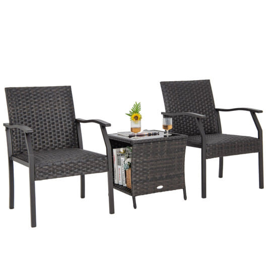 Specifications: Color of Rattan Mix Brown Material PE Rattan Metal Quick Dry Foam Tempered Glass Dimension of Chair 26″ x 23″ x 34.5″ Seat Height 16.5″ Dimension of Coffee Table 18″ x 18″ x 19.5″ Total Net Weight 38 lbs Weight Capacity of Chair 330 lbs Weight Capacity of Coffee Table 132 lbs Box Qty 1(May vary by batch)