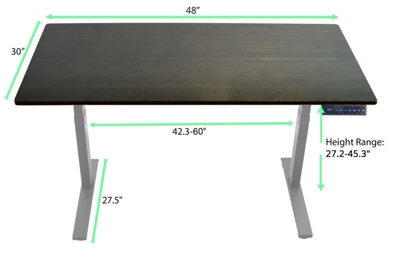 This adjustable height electric desk frame is topped with a beautiful 48×30″ solid, black-colored bamboo desktop with a premium non-scratch finish that looks great in any office environment.