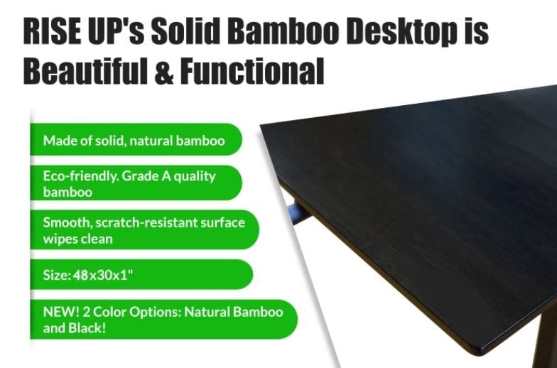 – Desktop Size + Material: 48×30″ solid bamboo, black colored