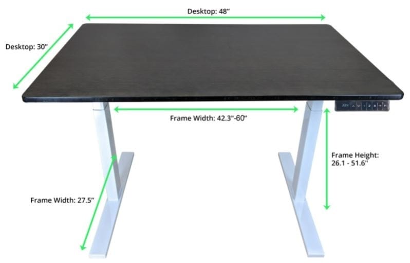 This adjustable height electric desk frame is topped with a beautiful 48×30″ black colored bamboo desktop with a premium non-scratch finish that looks great in any office environment.