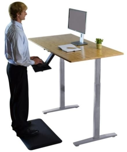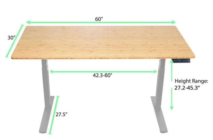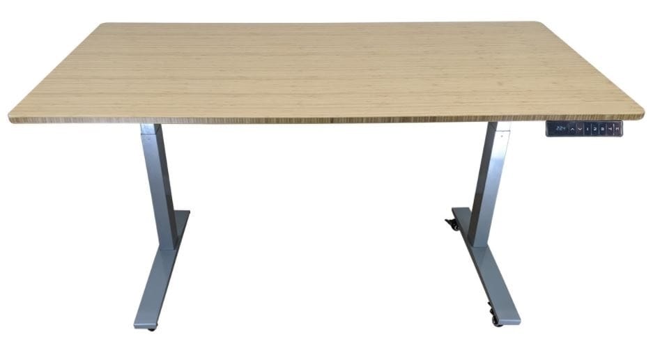 This adjustable height electric desk frame is topped with a beautiful 60×30″ solid, natural-colored bamboo desktop with a premium non-scratch finish that looks great in any office environment.
