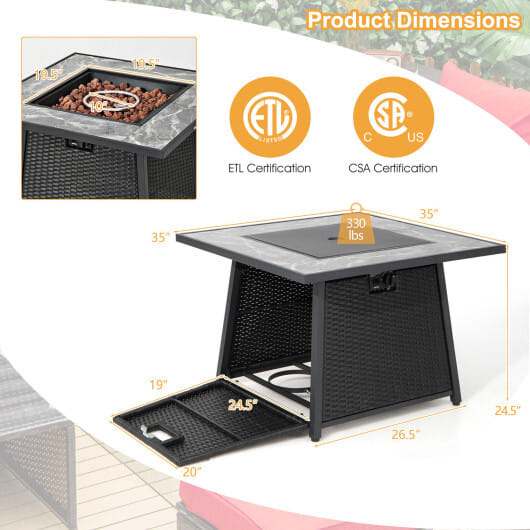 Besides the auto-ignition system is easy to operate and convenient to control thus you can adjust the flame size to low or high as needed. When you want to use it without the flames there is a lid for the fire pit which can be easily converted into a dining table or coffee table. In addition the ETL certification ensures safety while using it. This versatile propane fire pit table with an elegant rattan look will give you a surprise when there are parties for friends family gatherings or just afternoon tea for yourself.
