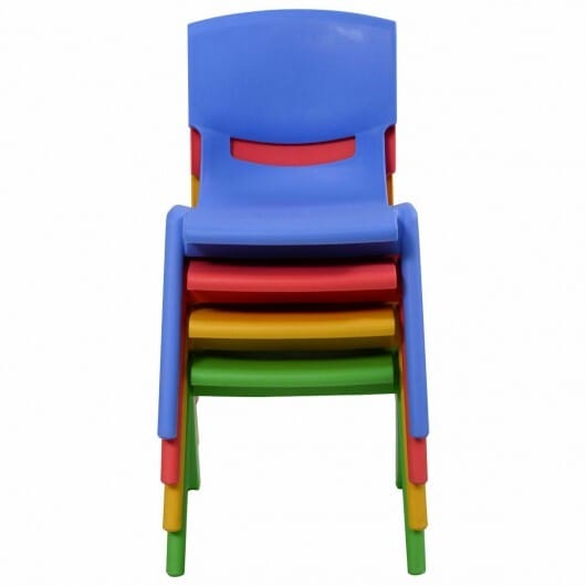 Specifications: Color: Red/blue/colorful Material: HDPE + Steel + PP Chair size: 14″ x 13″ x 21″ (L x W x H) Chair weight capacity: 176 lbs Suitable age: 3 – 8 years old Box Qty: 1(May vary by batch)Package includes: 4 X Children’ s chair