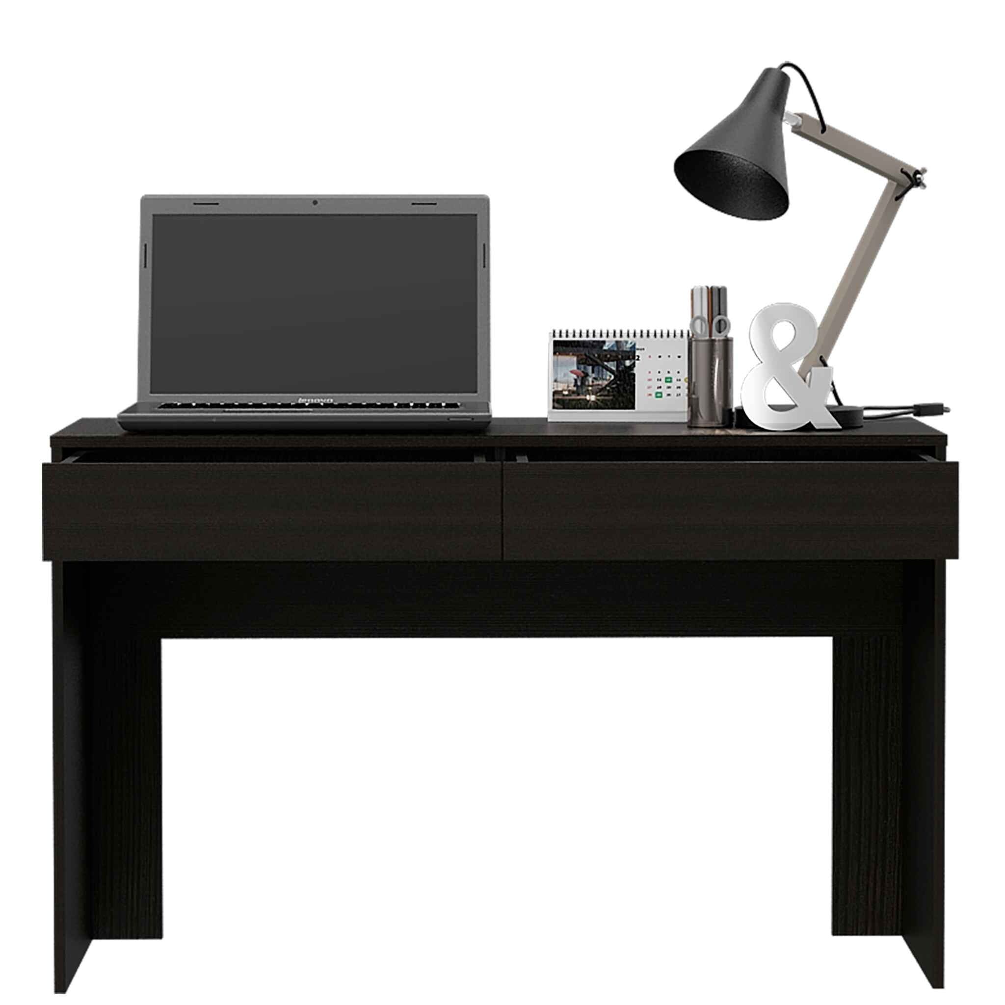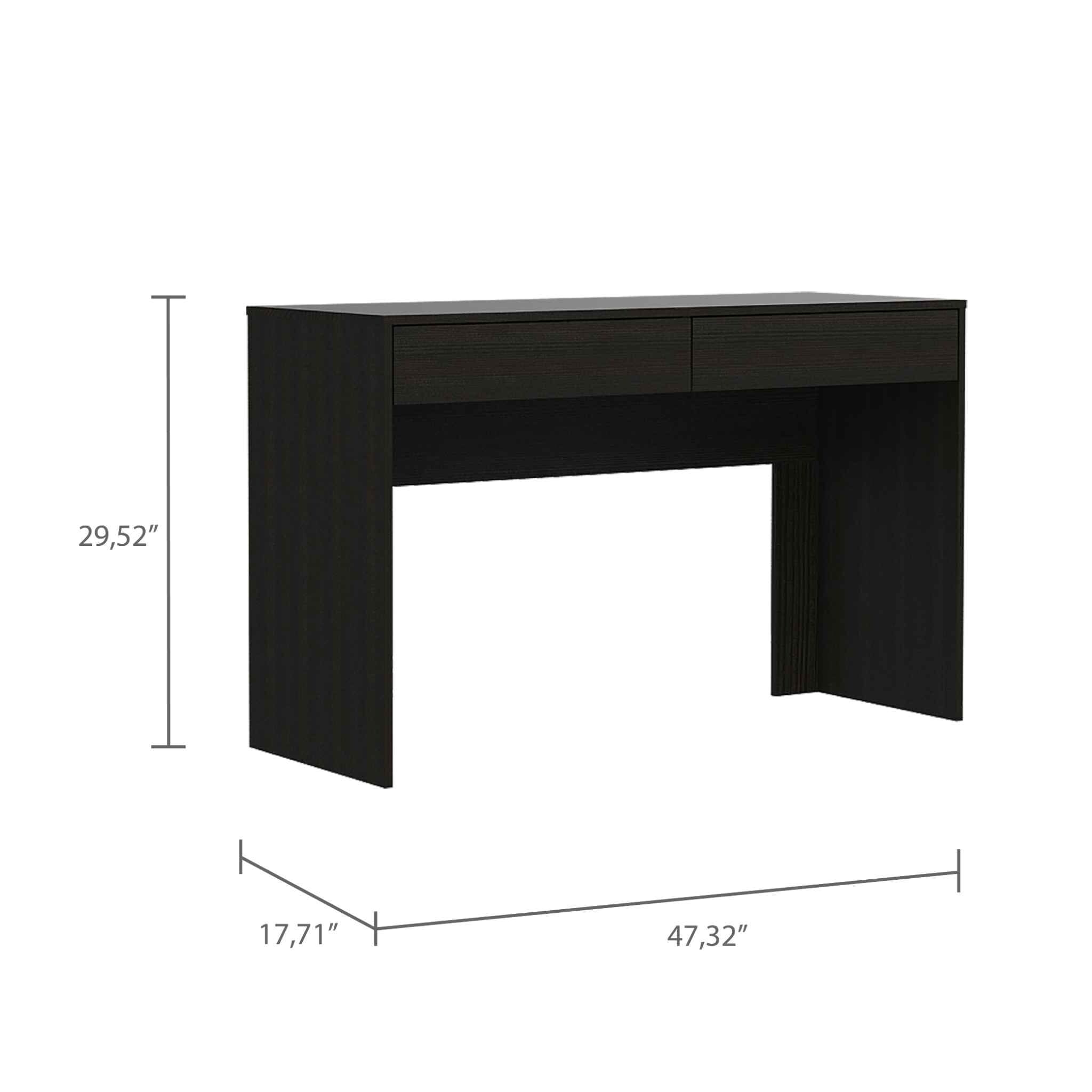 Stay organized and efficient with the amazing Black Computer Desk with Two Drawers. Stylish and super practical, this is a beautiful minimalistic desk for any home or office. Perfectly suitable for living room, bedroom, home offices, or teenager’s rooms. It features a large desktop surface and two spacious drawers with all-metal hardware. The entire desk is made from a high-quality particle board with a beautiful black wenge finish. 29.5-inch H x 47.3-inch W x 17.7-inch D