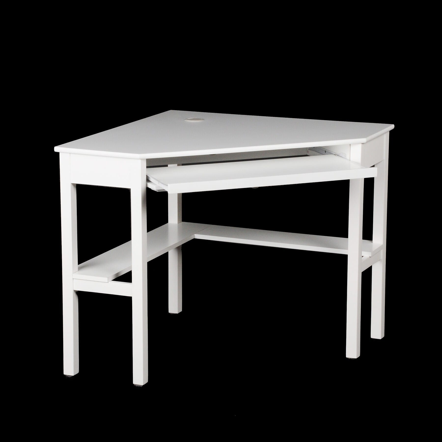 Bring this classic style 48-inch white solid wood corner writing desk to your living room, home office or bedroom as a practical and fashionable accent. Featuring a great space saving design, this corner desk corner desk is a perfect option for that corner nook in your living room, home office or bedroom. Built to last, this sturdy desk is designed for comfort and efficiency for years to come. 30-inch H x 47.75-inch W x 32.5-inch D