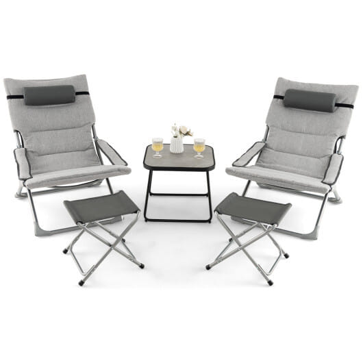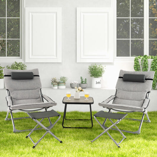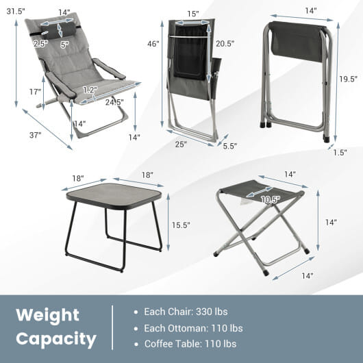 ● Includes 2 folding chairs 2 folding footrests and 1 coffee table