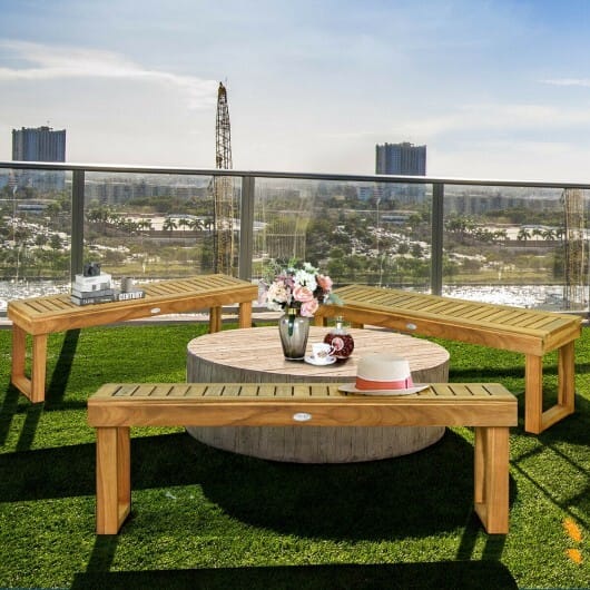 Are you looking for a natural style bench for your patio? If so this bench is highly recommended to you. Besides with the varnish that makes the bench surface smooth our bench is waterproof and easy to clean. Meanwhile it is scratch resistant that can provide years of use. The bench is great for casual seating and suitable for various outdoor or indoor places such as your patio backyard garden hallway bathroom and dining room. With natural teak color and wood-textured surface the bench will be a good complement to your home.