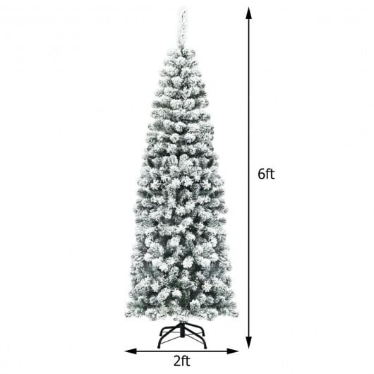 Transform your living room into a unique winter wonderland with the snow flocked pencil Christmas tree.