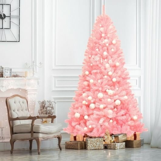 Specifications: Color: Pink Material: New PVC metal Length:7.5 ft Width:4.3 ft Net weight: 22 lbs Number of tips: 1258 tips Box Qty: 1(May vary by batch)Package includes: 1 x Pink christmas tree 1 x Metal stand