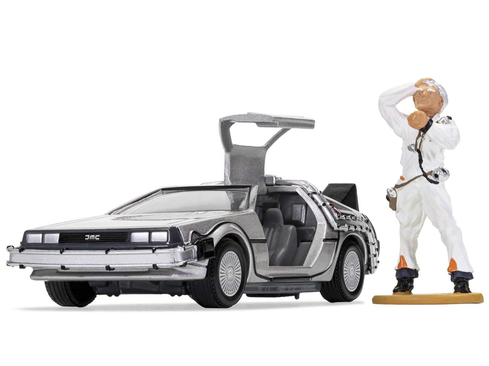 - Brand new diecast car model of DMC DeLorean Time Machine with Doc Brown Figure “Back to the Future” (1985) Movie die cast model car by Corgi.
