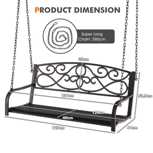This beautifully designed swing chair will perfectly go with your outdoor furniture. You can enjoy sunny days or cool summer nights on this elegant bench swing. Featuring a strengthened metal frame this swing bench is not only rustproof but also resistant to damage. Curved armrests and hollowed backrests make you sit with more coziness. The extra-wide seat allows you and your beloved one to swing back and forth together. And if you want further comfort you can also place a cushion on the seat.