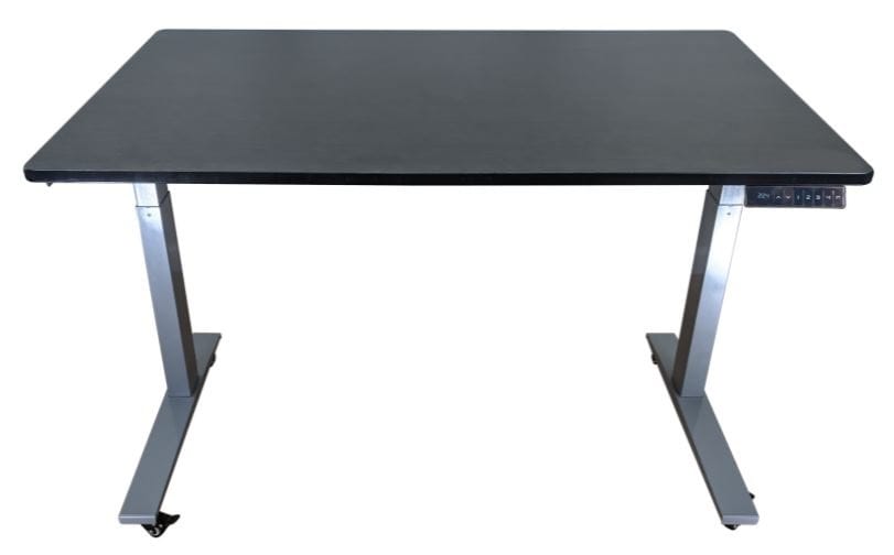 This adjustable height electric desk frame is topped with a beautiful 60×30″ black desktop with a premium non-scratch finish that looks great in any office environment.