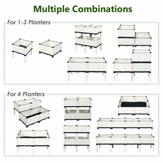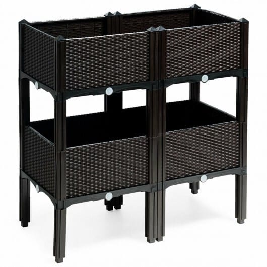Constructed of high-density polyethylene (HDPE) the planter box is solid and weather-resistant to withstand the change of weather. There are 4 planting boxes for you to setup in different shape. The height of garden bed is about 17 inches (include brackets) which can protect your plants from garden animal and pests. With our planter you don’t have to bend over or kneel for long time to grow plants and reduce pain on your back and knee. Elevated garden bed is designed with self-watering disk and drain holes to provide extra space for reserving water and help plants to absorb entirely. It can prevent plant from rot or over-drying effectively.Not only can these garden beds with rattan style help you grow plants but they also are nice decorations in your outdoor space.