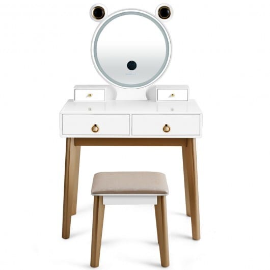 Vanity Set with 3-Color Lighted Touch Screen Dimming Mirror and 4 Drawers